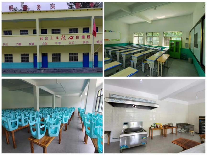 修缮后的校园、教室、餐厅及备餐区