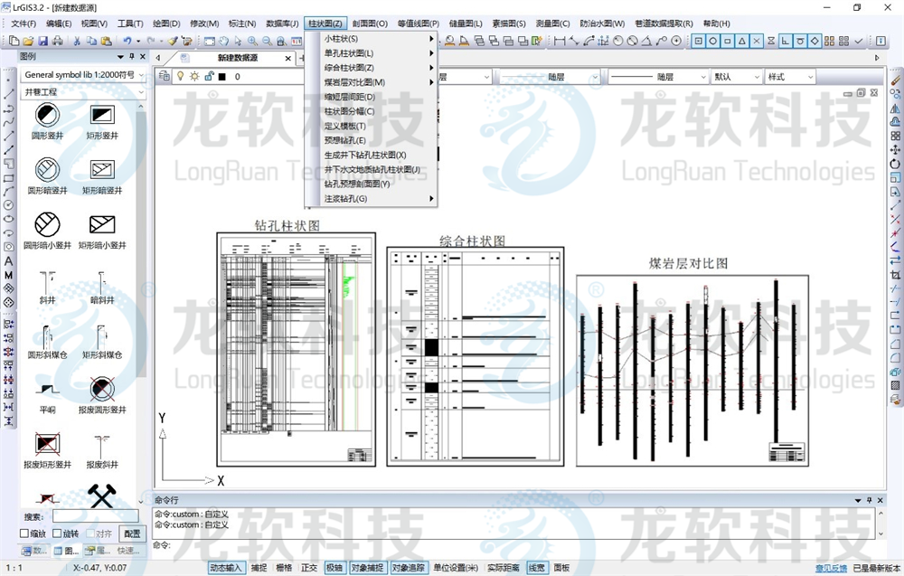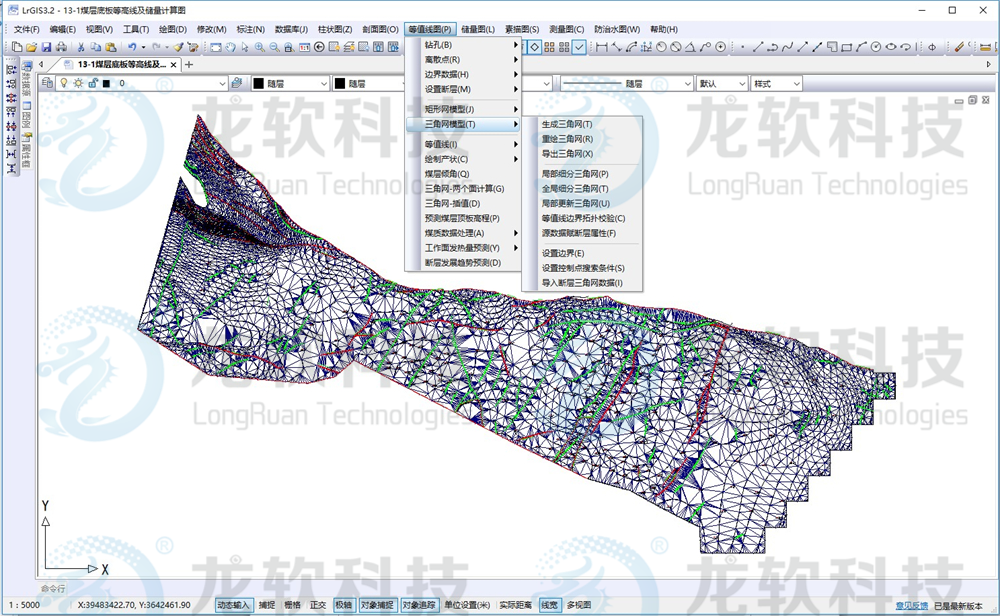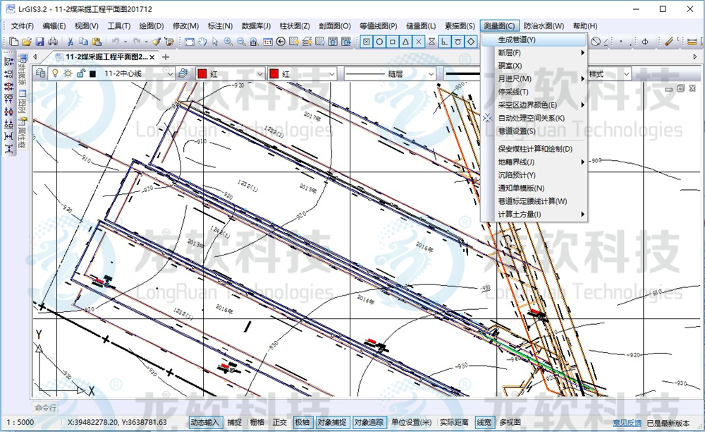 地测图形协同管理系统主要包括地测数据库管理、等值线图、测量图、储量图、柱状图、剖面图、素描图、防治水图、瓦斯地质图等模块。该系统以先进的算法、精准的空间数据信息处理、高效的图形处理流程,实现等值线图、采掘工程平面图、钻孔柱状图、综合柱状图、煤岩层对比图、勘探线剖面图、预想剖面图、底板等高线及储量估算图、巷道素描图等地测图件的绘制与管理,是矿井相关专业制图的基础。