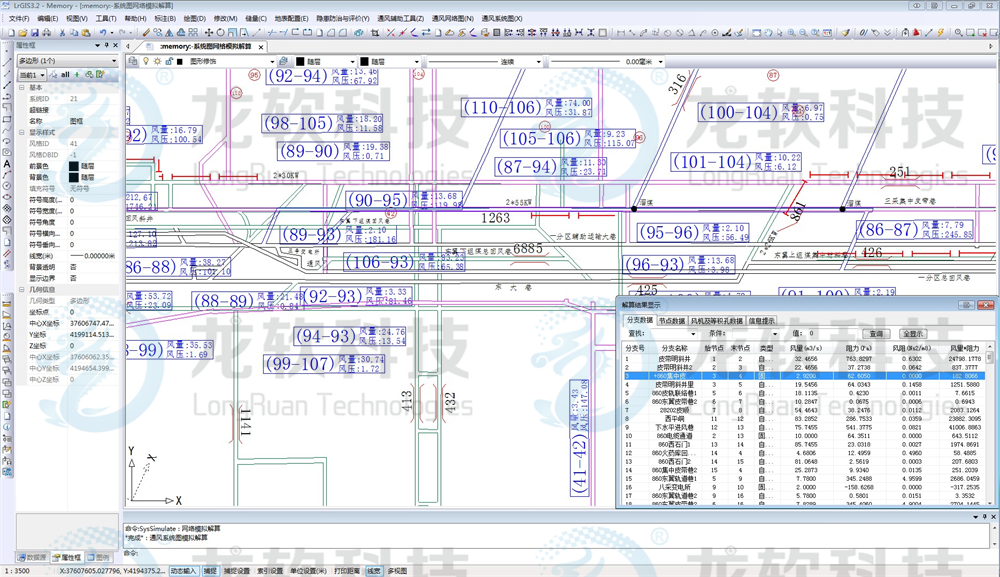 通防图形协同管理系统主要包括通风制图和通风系统仿真等模块。通风制图包括绘制通风系统图、避灾路线图、注浆系统图、瓦斯抽放系统图、瓦斯抽放曲线图、防尘系统图、防火系统图、监测监控系统图,自动生成通风系统立体图、通风网络图、通风系统压能图;通风系统仿真主要包括通风阻力测定数据的录入和处理,通风网络模拟解算,通风系统风量调节,风机优化选型等功能。