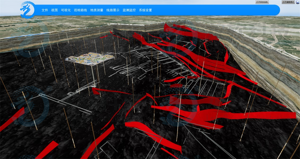 系统按照《煤矿防治水细则》、《煤矿地质工作规定》和《煤矿安全生产标准化管理体系基本要求及评分方法》等对煤矿地测防治水信息化的相关规定,以及国家发展改革委等八部委联合下发的《关于加快煤矿智能化发展的指导意见》、中国煤炭学会标准《智能化煤矿(井工)分类、分级技术条件与评价》(T/CCS 01- 2020)对智能地质保障的要求,为安全生产、地质灾害预警、智能开采、智能掘进、智能管控等提供高精度三维地质模型和业务数据的集成与应用服务为目标,采用云计算、协同TGIS、虚拟现实、移动互联网、大数据分析等先进技术,基于一张图管理理念,开展高精度地质探测、物探数据再解释、多源地质数据融合等,建立地质信息数据库,形成煤矿专业地理信息系统平台、地质一张图Web协同平台、高精度透明地质保障平台、地质大数据分析与隐蔽致灾预警报警分析和预警平台,形成面向云计算和大数据的智能矿山透明地质保障系统。